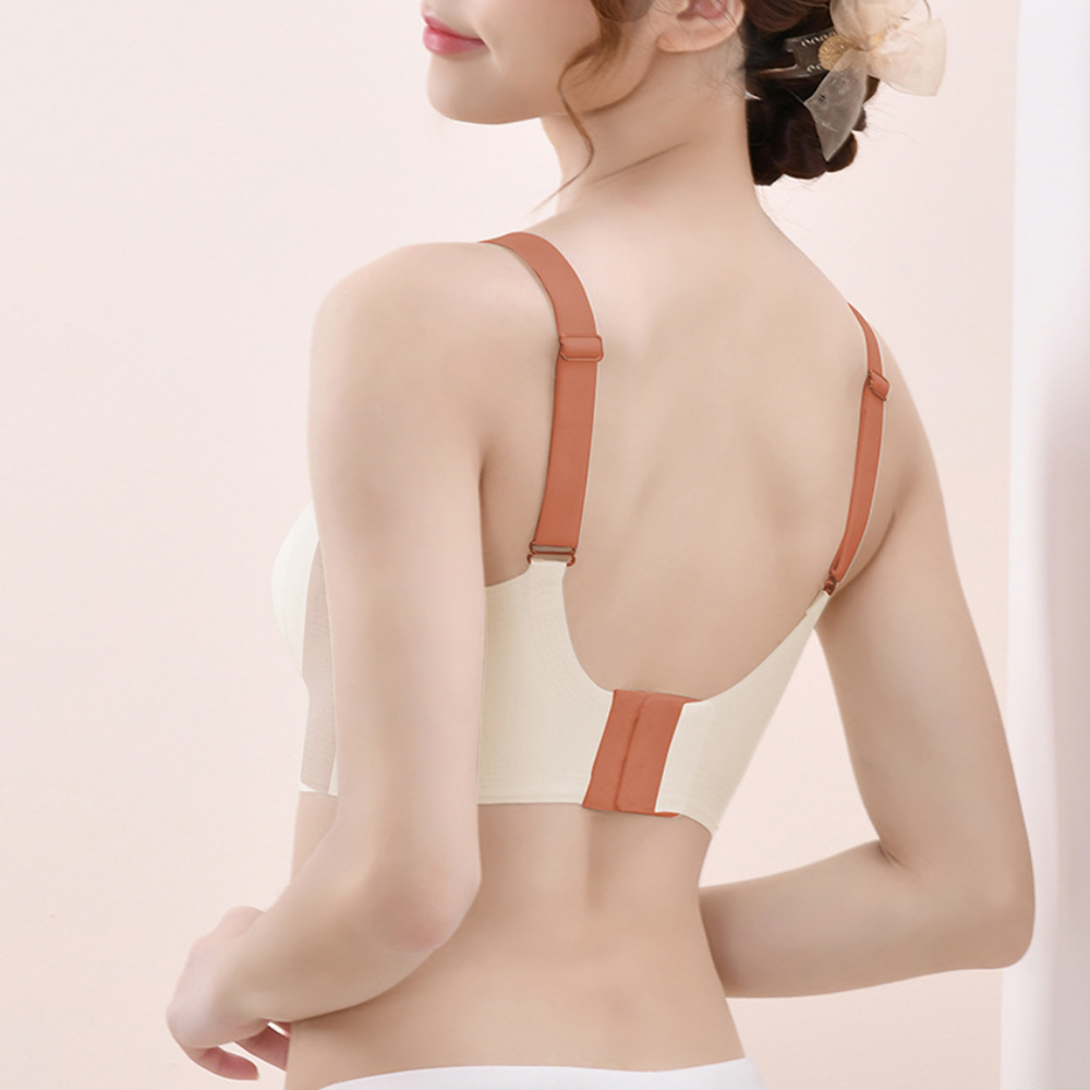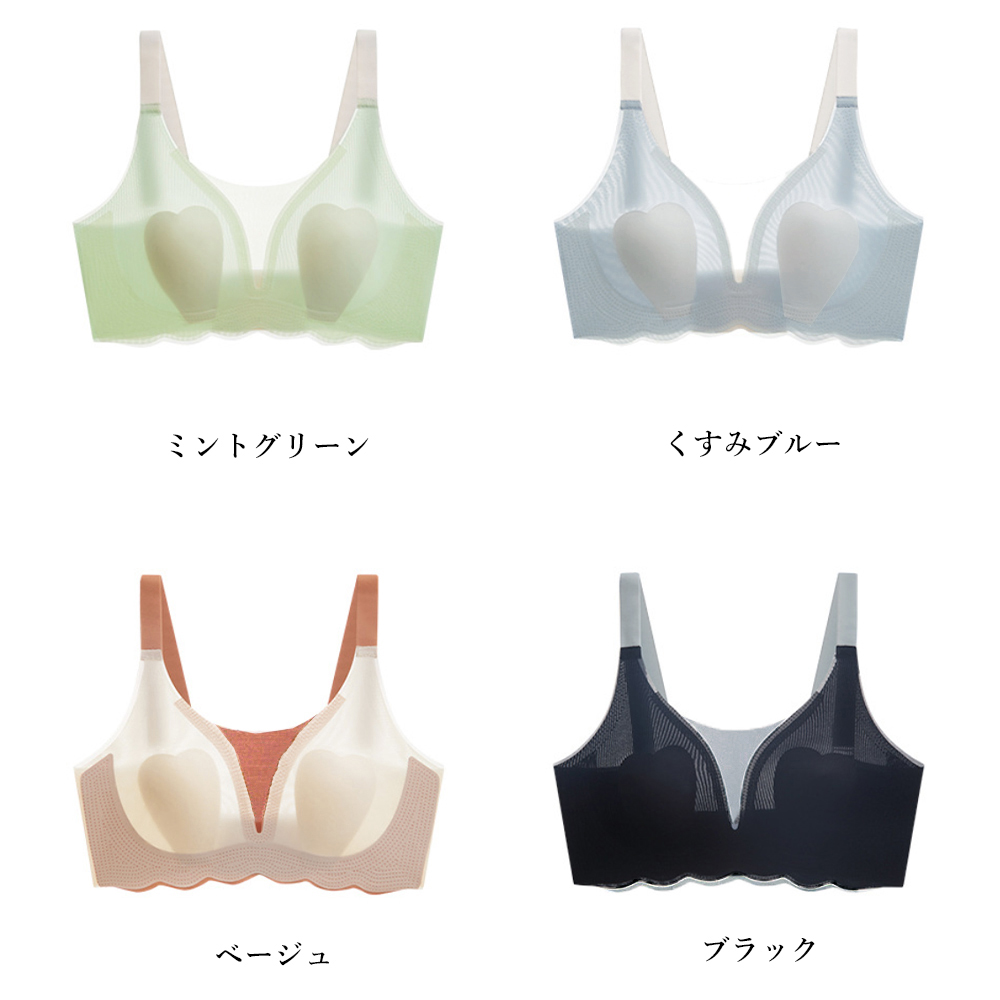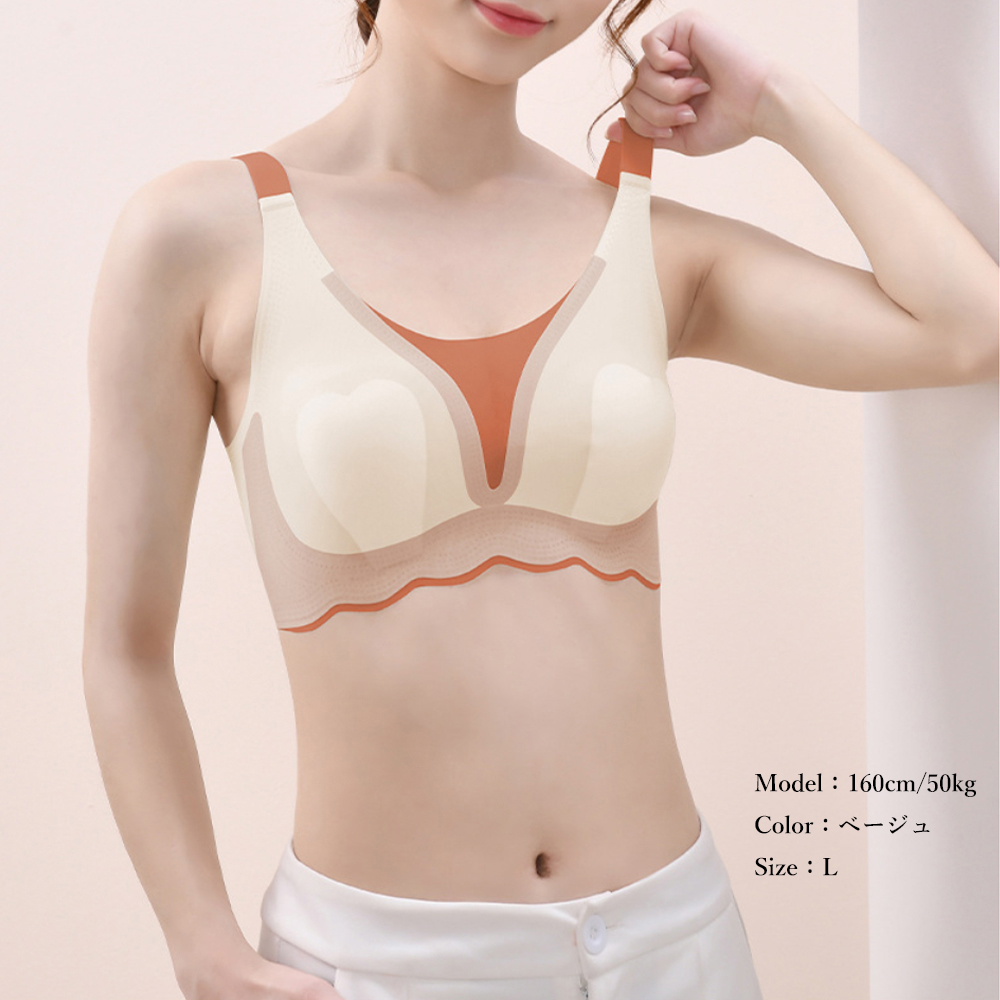ノンワイヤー設計でもしっかりと胸を寄せ上げ、自然な谷間を演出。