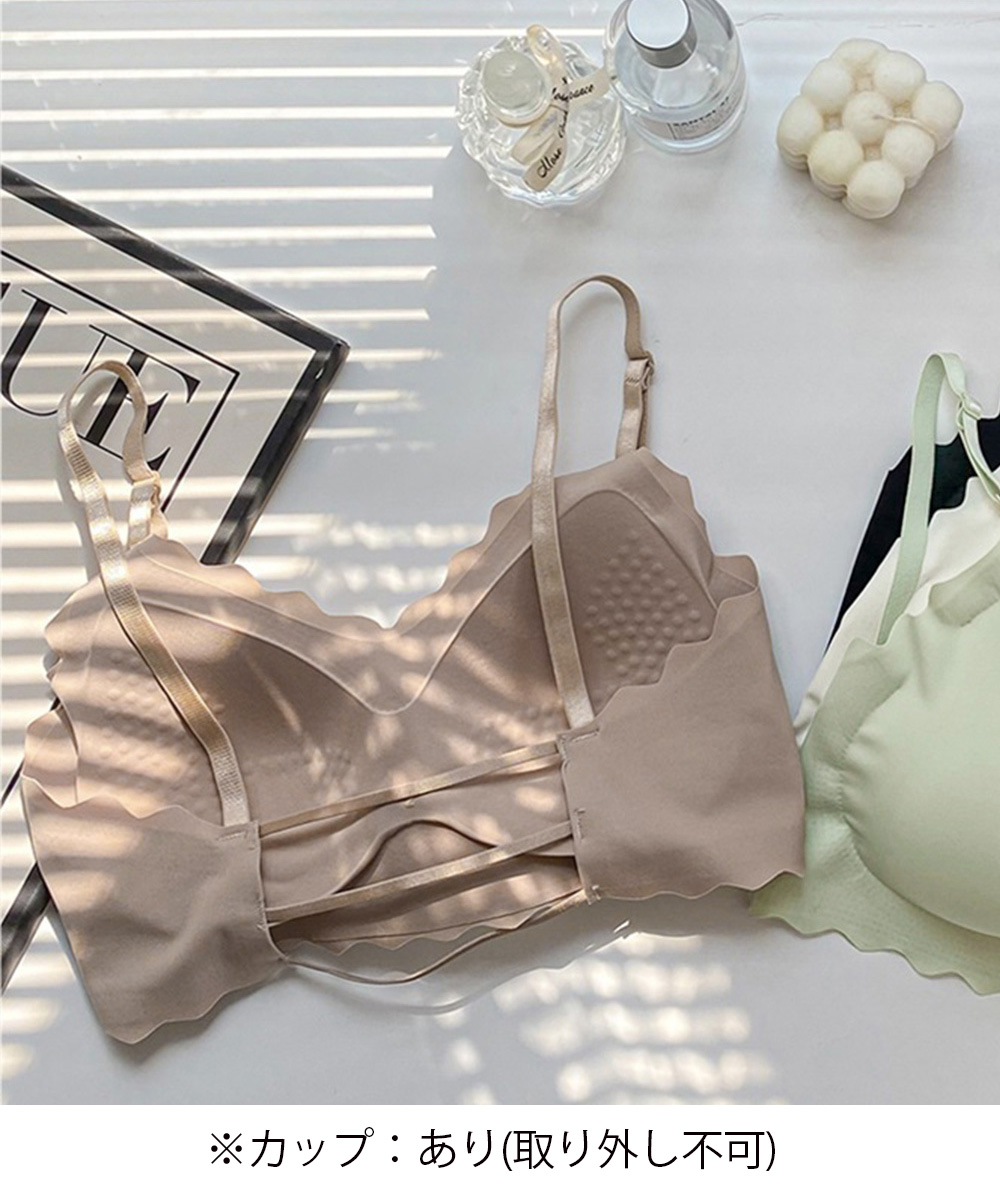 小胸さんのバストを自然に整えるスカラップデザインのバックストラップブラです。